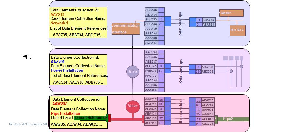 数字化工厂的另外一个要素就是属性关系,即各个资产属性之间的关系,它是用来描述资产和资产之间的因果和逻辑关系的。在一个实际的工厂里,资产和资产之间必然存在着种种联系,比如执行机构和阀门存在着物理和电气上的连接关系。在数字化工厂模型里,除了对资产属性本身的描述,还需要完整清晰地描述资产属性之间的关系,由于这些关系的复杂性,完整的描述同样十分复杂。